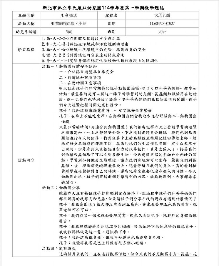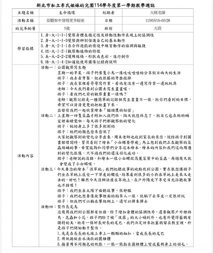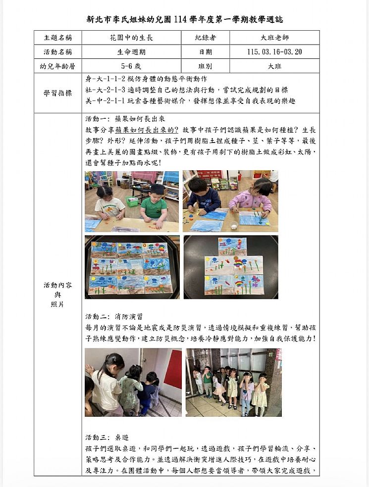 關於【 #週教案 #大班 #115年3月16號至115年3月27號 】留下您的留言