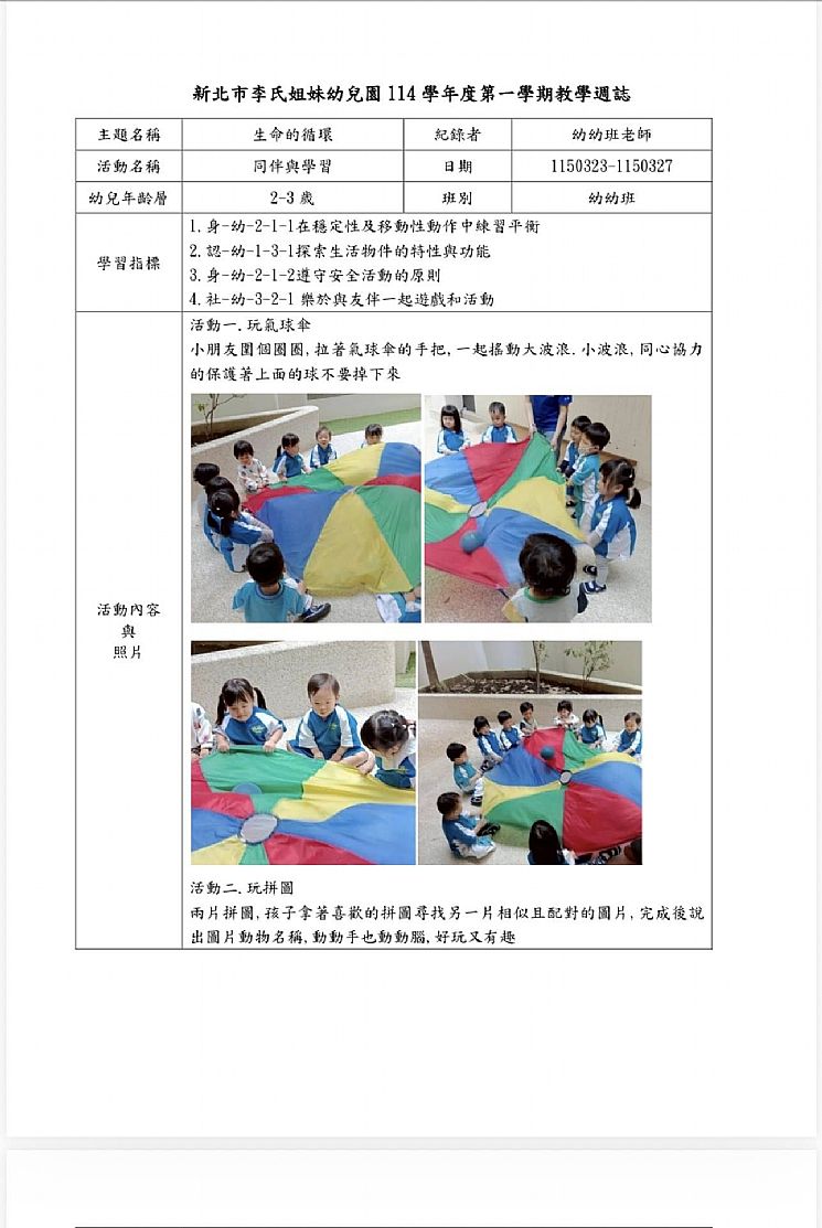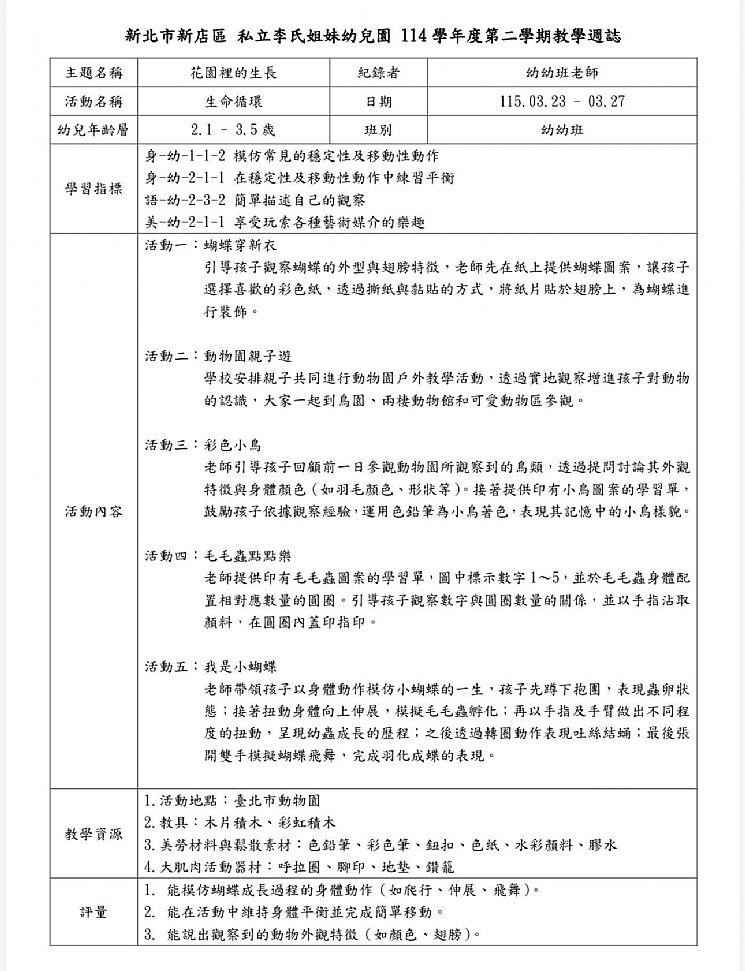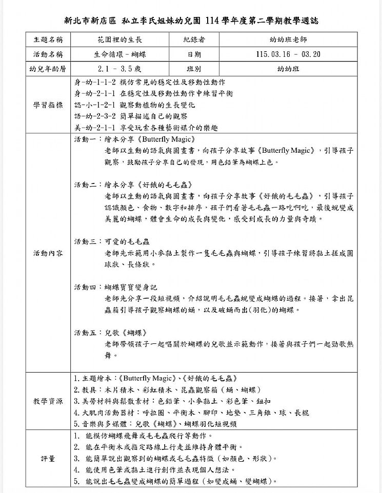 關於【 #週教案 #幼幼班 #115年3月16號至115年3月27號 】留下您的留言