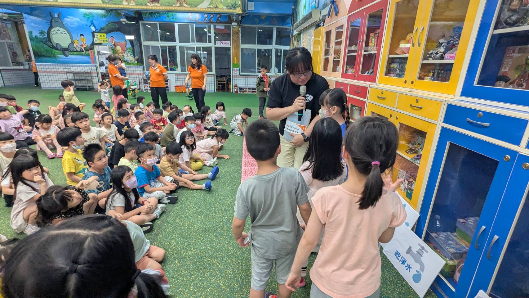 透過台灣世界展望會專員介紹,帶領小朋友深入了解水資源與糧食的重要性,小朋友並輪流分享此次分享生命教育的收穫。(圖由台灣世界展望會新竹分會提供)透過台灣世界展望會專員介紹,帶領小朋友深入了解水資源與糧食的重要性,小朋友並輪流分享此次分享生命教育的收穫。(圖由台灣世界展望會新竹分會提供)